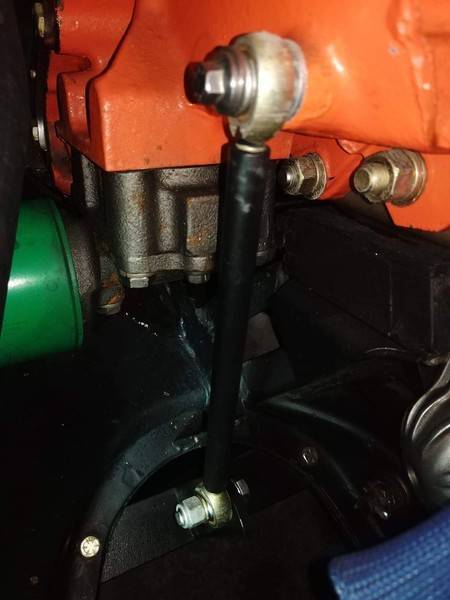 I drilled a hole through the top of the diver side frame rail and installed a sturdy size eye-bolt. Then attached to a front bolt of the block (440) with an matching size turn-buckle to the eye-bolt. This set up gave me the flexibility to adjust it slightly loose for daily driving, then less tight for racing.