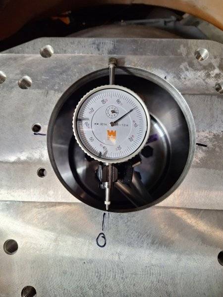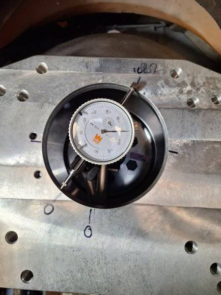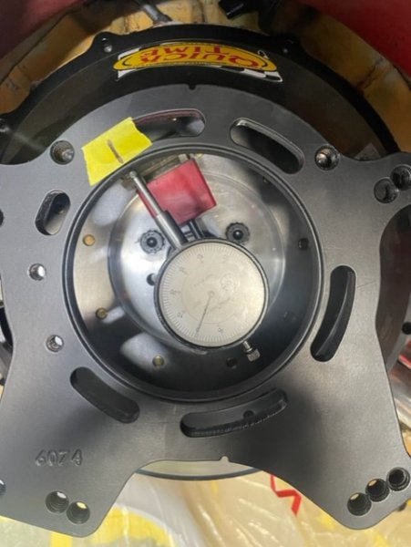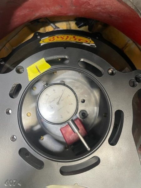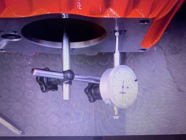 Didn't get a pic of the high spot, but it's at 2:00, .082". Rotated the plunger 180° and recorded 0.00".