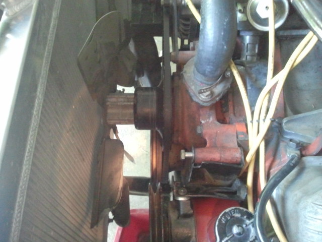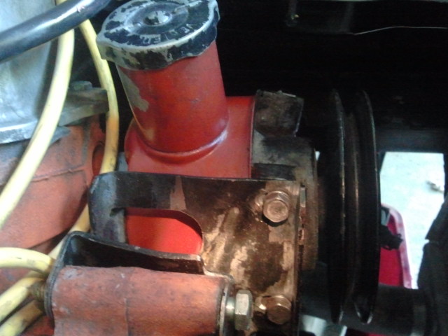 that connect the pump to the bracket. What I did was expand the holes in the bracket wider so that the pump could slide forward some in the hole. I then shimmed the back bolt to make up for the movement forward. All looks good now. Maybe someday I will get the correct Saginaw pump for it.