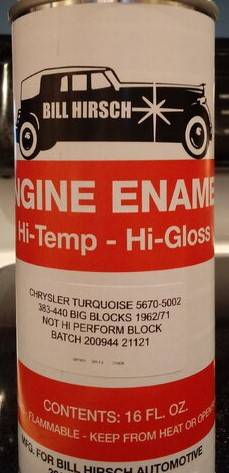 Interested if it is really green turquoise, because OER turq as stated above 60-69 is NOT Turquoise. 60-69 probably had a lot of BLUE engine colors.I have cans of Mopar paint I will be listing shortly....