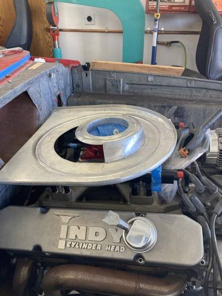Today I worked on the new filler piece, 3rd times the charm and got it to where I could get it tacked. After I got it tacked I noticed it had some oil can going so I put it in the shrinker and tightened it up. Next go around will be making the back filler piece/pieces. After that I'll get the vertical filler tacked on and from there start working on the firewall ducting.