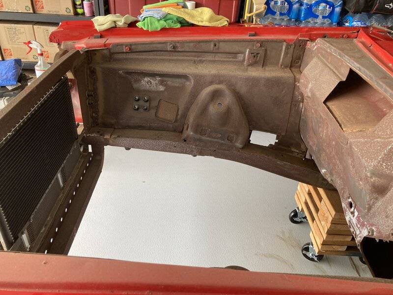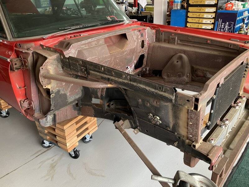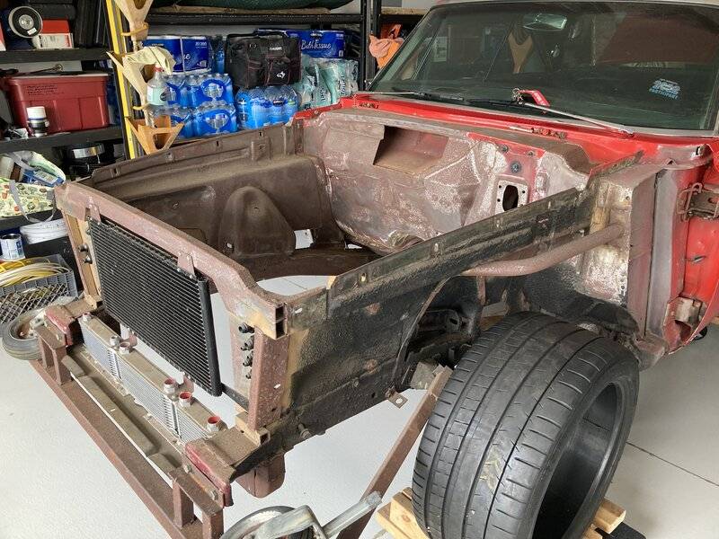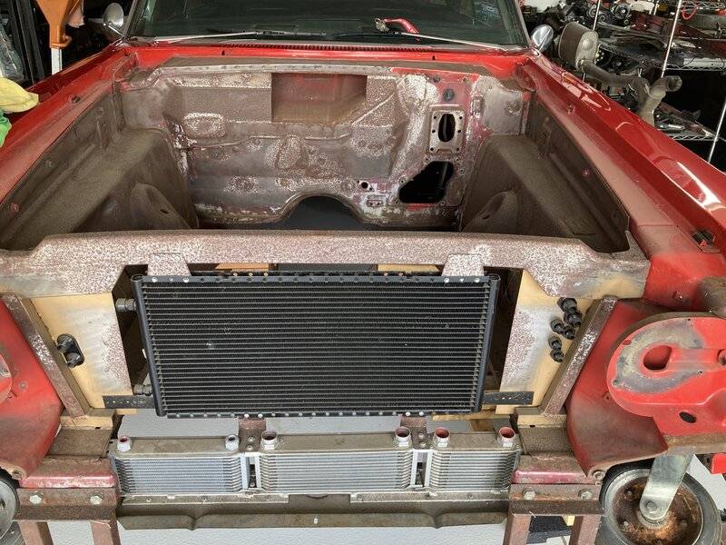 Met up with a guy yesterday that has an awesome collection of Mopars, wonder if he needs a new son. LOL! He has a nice stash of early B parts so I was able to get a couple of bumpers from him. Might be able to hook him up with my cast off pieces in further needs. Got them home and took my sawzall to them to harvest out the needed sections. Don't worry, I didn't hack up pristine units. One of them even had a license frame from the dealer in the town I grew up in and that my parents had bought the wagon and truck from in the 60's. Cool! After the hack fest I started forming up my air cleaner unit. For the basic shape going on my wheel then from there transferred to my shrinker/stretcher, shrink jaws in, and started getting it in a U to wrap around the spacer on my TB. This will be part of the plenum and from there I'll be heading towards the firewall. The filter I chose is for a 14 and newer Vette [yikes!] since on that cars application with a blower, I figured the airflow would be sufficient. I was looking at using a filter from my 04 Cummins or a like 95 truck 5.9 gas but that would require me to shorten/re-thread/re cut o-ring groove on the fuel rails. Going to work some more on that today after church. For the bumper, my plan is to widen out the license opening as far as possible, which is why I needed graft material, so that there is plenty of airflow to the oil coolers and a little extra to the radiator plus through the engine compartment. Trying to maximize airflow to keep things cool in there.