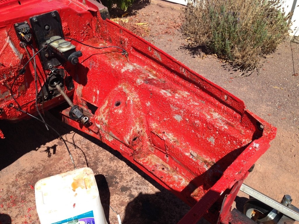 I've been getting some time in on the middle section, t-bar area, since the last shots. Today I wrapped up the ground side of the area. Once I finished up the area, I whipped out the vacuum to suck up the last couple weeks of grinding grit. Wednesday I'll get started on the rear spring relocation.