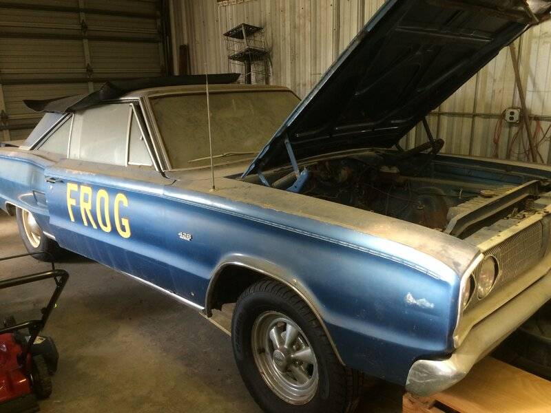 1967 Coronet R/T hardtop. Ordered by a customer, bright blue, white interior, white pinstripe, buckets/console/tach.