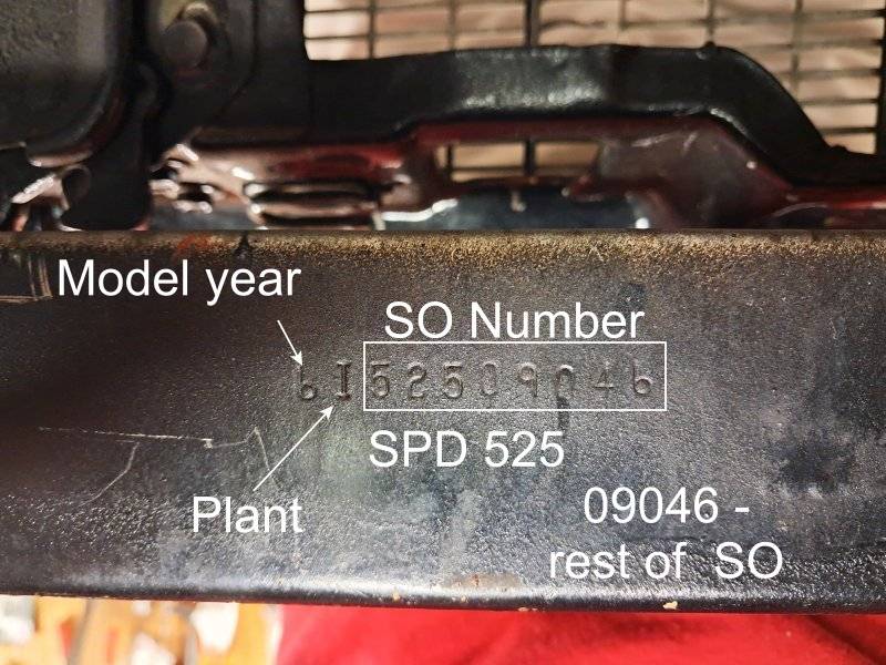 My 67 Satellite that I'm currently restoring, the SO# is on the core support and the rear cross member just to the left of the left rear bumper bracket. They should match the order # on the IBM card.