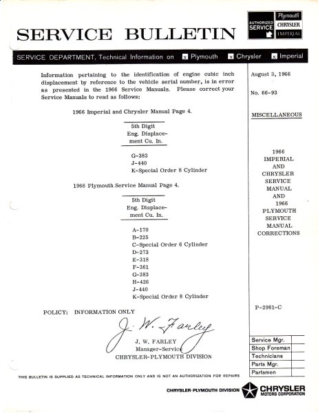 Thanks, but Page of 1966 Coronet FSM disagrees with you.Not that it matters, but the VIN code D is a 273.