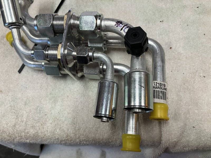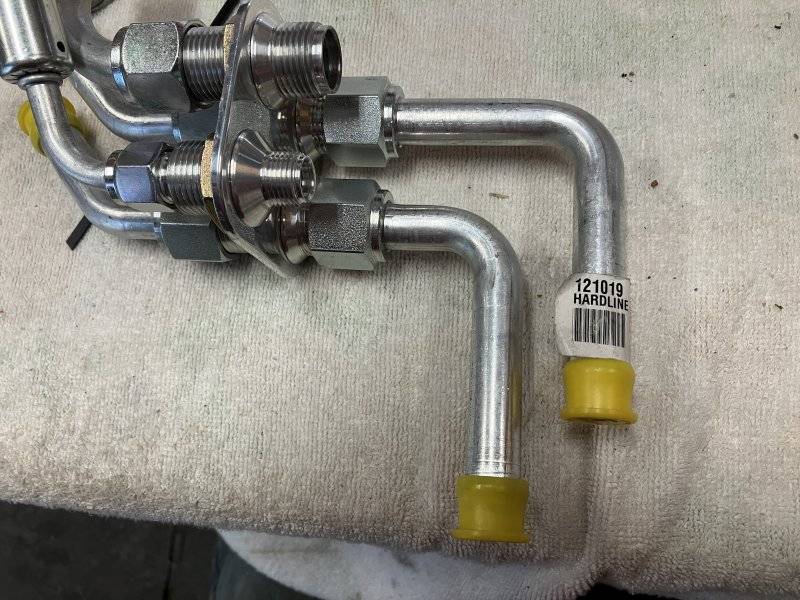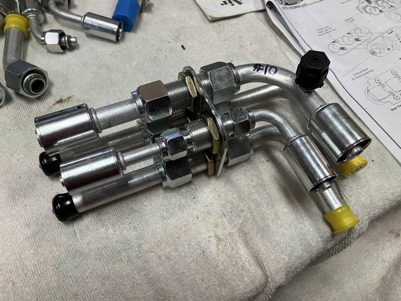 I’d first thought I’d run the lines as shown in yellow highlighter. If I get another 4 port manifold and use 90 degree fittings on all 8 ports, I might be able to keep the lines against the firewall and fender apron and out of the way of any contact with the tire.