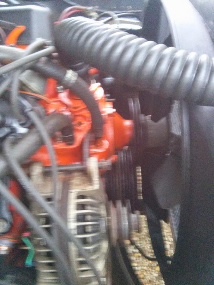 The problem I am having is that the water pump pulley sticks out way too far and cant match up with the alternator. It could match up directly below with the last crank pulley slot but did not want to put a small belt straight down.