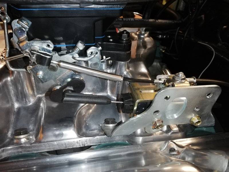 I have a Edelbrock RPM intake and Edelrbrock AVS2 Carb. My stock cable just broke, I think stock bracket and cable never sat quite right.
