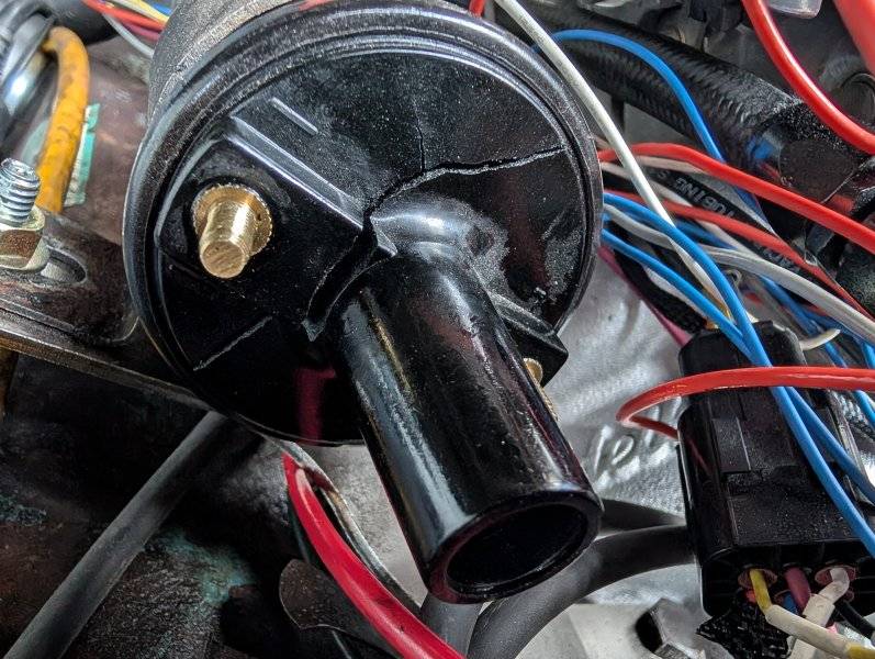 Swapped for original Mopar coil and spare hei module, car runs, just did that for 2 min to get back into the driveway.