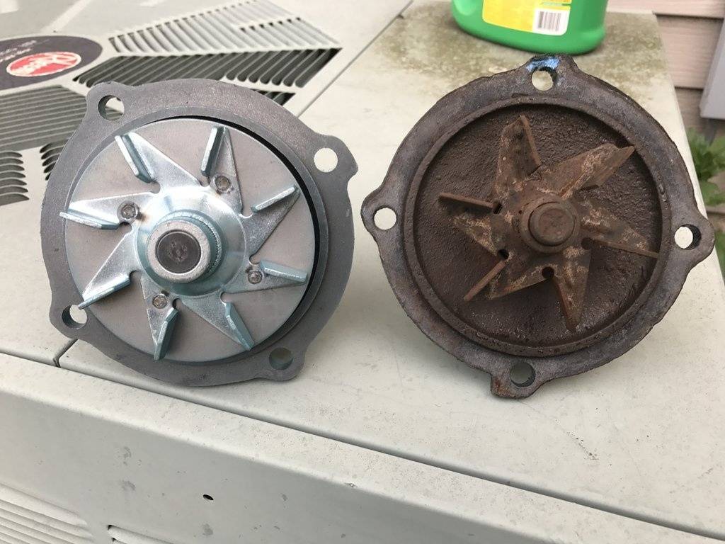 Mine looks the same but without the backing plate. I didn't know they made them that way. Mine really moves the coolant once the T stat opens.