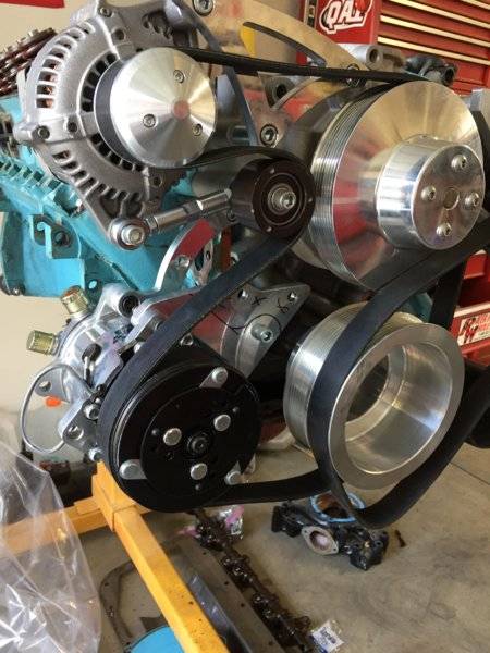 That looks much betterAs some of you know, I bought the CVF Beast serpentine set up from Derwud. Well after taking a long hard look being mocked up the way CVF has it, I didn’t like it. So I set out to drop the ac compressor down low on the passenger side. It’s almost done, just a few cuts and it’ll be ready.