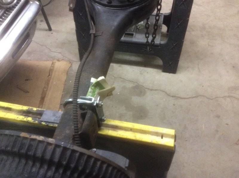 Put rear on sawhorses and made L brackets to keep it nose up. Used 3" muffler clamps to hold L brackets. Only able to bend 3/32" stock, no torch had to stick a block of wood under housing.