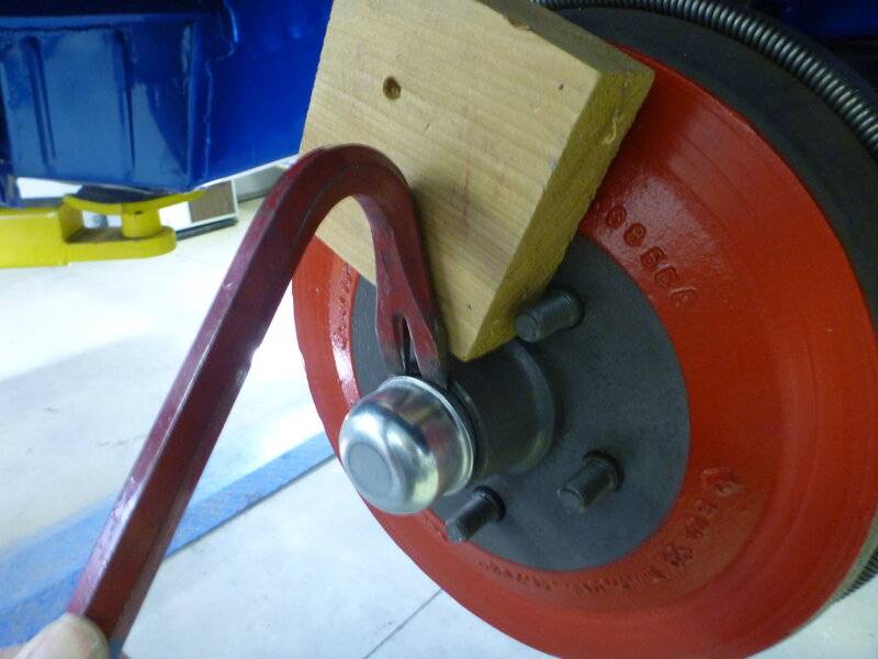 Checked my front outer wheel bearings conditions (fine) and retorqued both spindle nuts at 90in-lbs. Was a lot easier back when we used a hammer to removed dust caps.Tire wear looking good on my Goodyear Redline Raceways. Snugged up my weeping rocker covers and