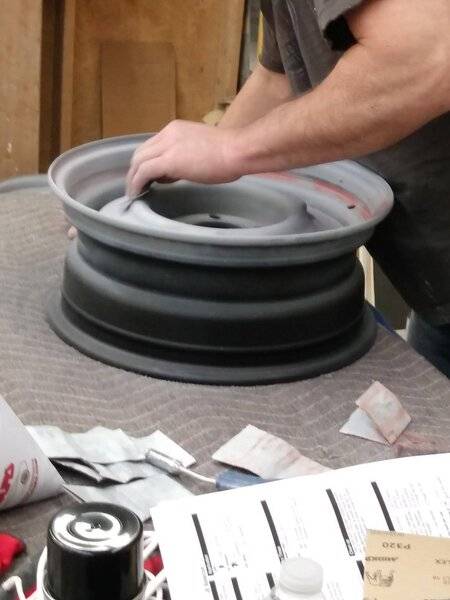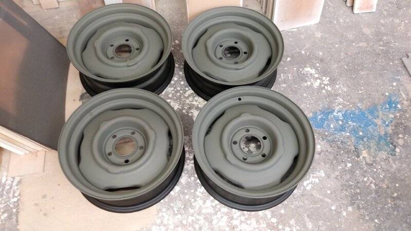 Has anyone seen my buddy’s wheelsWhat better time than a shutdown week to borrow the spray booth at work to finally get the steelies done the right way. Had them blasted to bare metal, after that I etch primed, filler primed, 3 coats of Shop-Line JB MM1 Turbine Bronze base (Ditzler 60492), 3 coats of Shop-Line JC630 polyurethane clear and voila, lookin better than ever. Bought a new inexpensive hvlp gun for this job. Worked out great. Do you need to spend a lot on a high end gun to get really nice results? No. If I ran a shop that I relied on my gun to earn a living? Then yes. All depends on your situation.