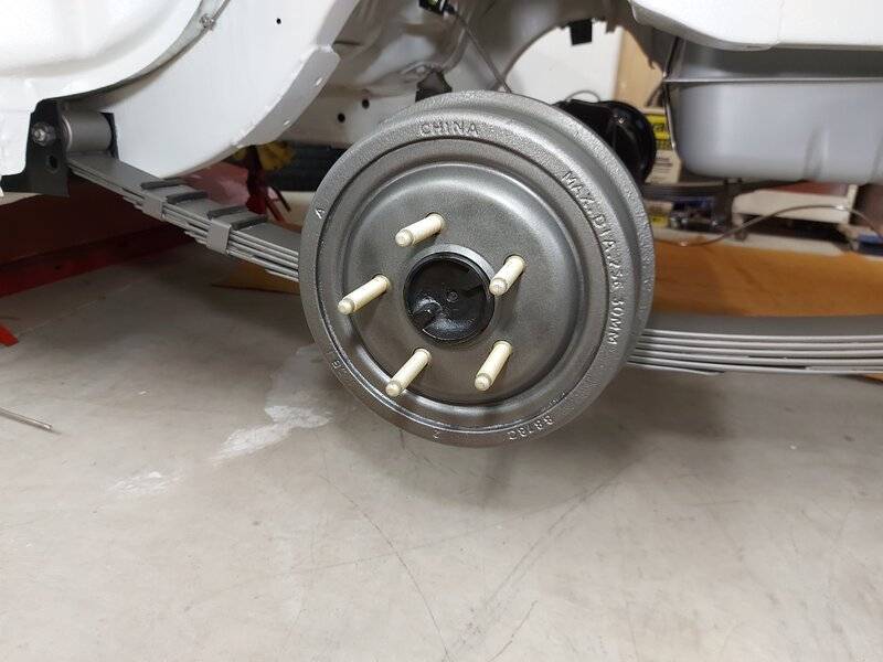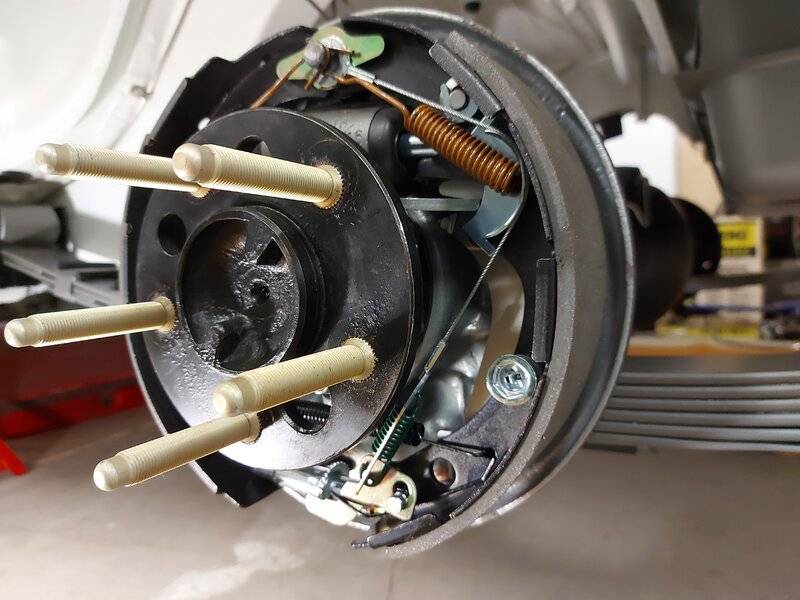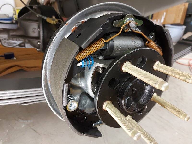 Is it just the picture or are those wheel studs really long?With the correct brake hardware delivered I was able to get the rear brakes installed along with the drums....