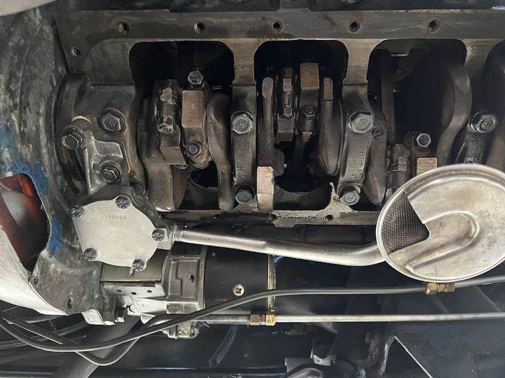 When I bought the car ('63 Sport Fury) the dipstick tube was broken off in the block. I had to drill out the old tube prompting me to pull the oil pan. There was about 2 inches of black muck in the pan so I cleaned everything up Thursday and put the new oil pump on Friday and will get the blasted and repainted oil pan on today.