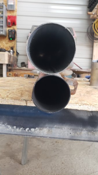 Is it possible to take a pic of a 2.5" vs. 3" pipe, end section for comparison?Started replacing my 2.5" exhaust with 3". Got a kit from Jegs and 2 Ultra Flow mufflers. Had to make the driver side shorter to get it through the trans cross brace. I'll finish fitting it tomorrow and get it welded up including a crossover pipe and o2 bung.