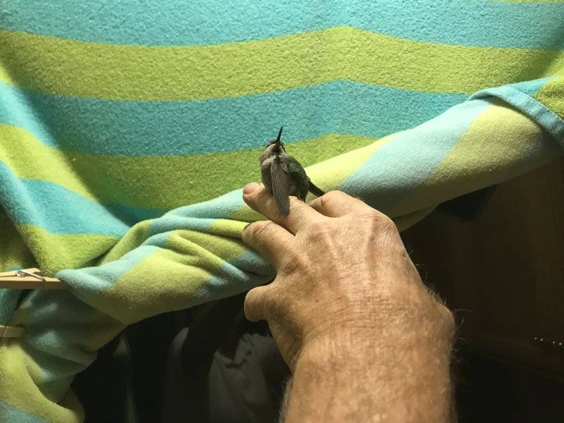 She landed on my hand a few times then I transferred her on to the feeder perch where she spent a nice warm night.