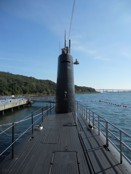 What sets this box apart from other military shadowboxes, is the fact that the lumber used to build it came from the top deck of the Historic Ship USS NAUTILUS SSN-571 the worlds first Nuclear Powered Submarine, which made numerous historic voyages including being the first vessel to transit the polar ice caps fully submerged. Submarines still had wooded top decks back then. It was in active service from 1955 to 1980, at which point is was declared a National Historic Landmark, and moored just outside the Naval Submarine Base in CT, where it became a floating museum, available to the public.