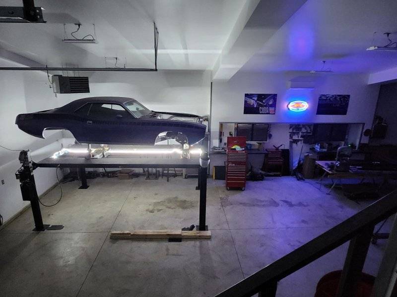Lights are led strip lighting with adhesive backing. amazon sells different lengths, its actually 2 sets. around $20 each (that was about 5 years ago). The adhesive comes loose after a while. since I will have to use my lift to paint the underneath of the car, (masking off the lift of course) they will get overspray on them they will be exposed so I can see. Will see how they hold up to wax and grease remover, possible thinner on a rag to clean them up. If they survive, I planning using a little silicone sealant to anchor them back in place, or just replace. as for the dents, basically are from years of driving abuse etc, They are mostly confined to the frame rails, pretty minor but I'm there so will give them a little attention with a torch, dent puller and maybe a BFH. will post some pics when I'm addressing them should be in a few days. Currently grinding and touching up the tail panel welds. I have a full write up on FEBO under AAR resto.Please fill us in on the lighting you have under your lift, & what's going on with all the dents under the Cuda?.