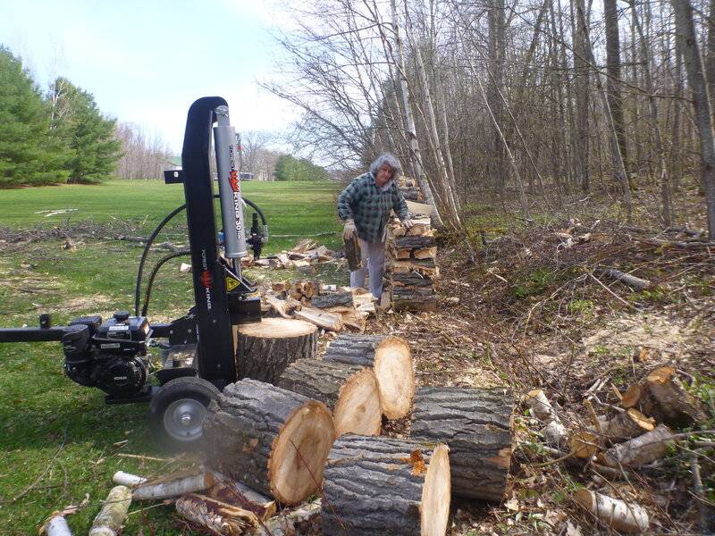 Trashed my left arm a bit more, but we're getting it done. Just glad I married a true Canadian gal ! 7 hours today and we still have the bottom 30' of the 102 year old tree to go. 20 big rounds left to split, then on to airplanes.... been saying that for 2 weeks!
