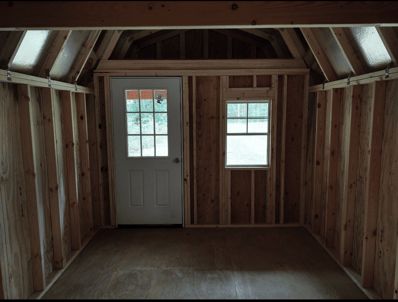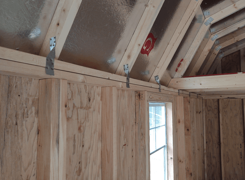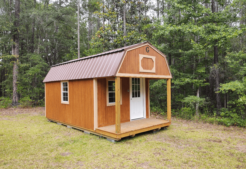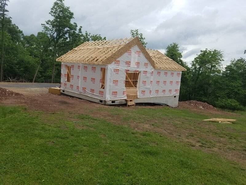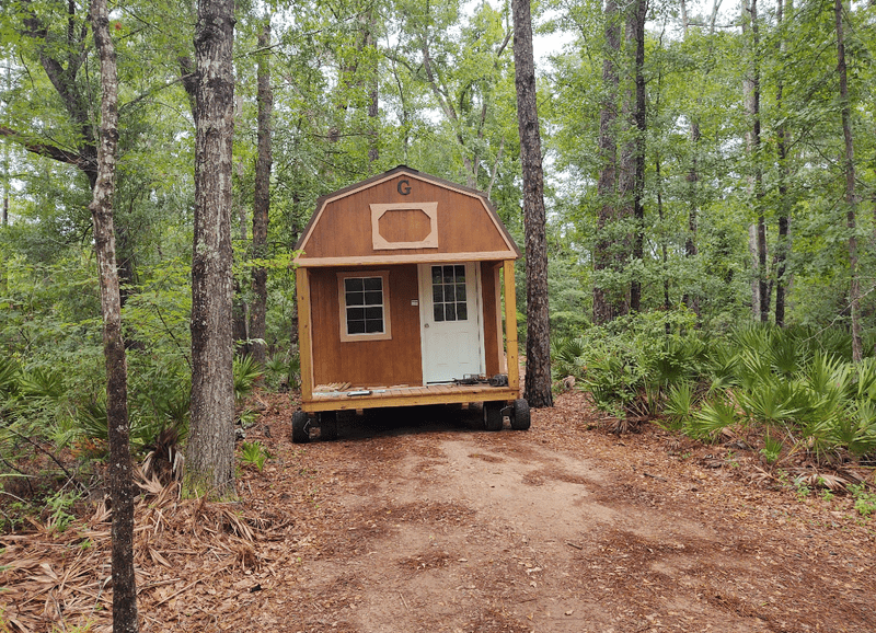 Wednesday: Took delivery of 10' x 24' (overall) portable building. Front porch is 4' deep. There is a loft over porch and a loft at the other end. Studs on 16" centers and hurricane straps. Floor is 3/4" plywood. No staples anywhere. Metal roof with ridge vent. Anchored down with four "augers" that are around 3' long. Sitting on 20 concrete blocks. Built in a plant near Hotlanta and trucked to my property for installation. Purchased March 5th and delivered/installed June 2nd.