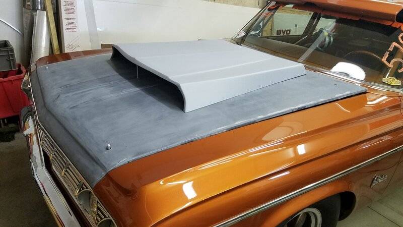 —-Got the hood fitted. A little blocking and itll be ready. Tring to get it into my buddys for a little touch up and hood paint. Carbs arrived yesterday. So it's time to fab up some carb linkage.