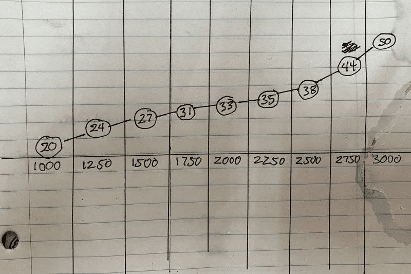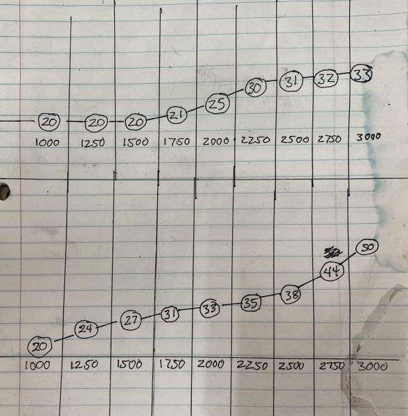 It may not be drawn like what you’re used to seeing but this made sense to me. It starts at an initial of 20 degrees at the 1000 rpm idle. This cam needs a bit more idle speed so that is why I’m not at 750 rpms like many others.