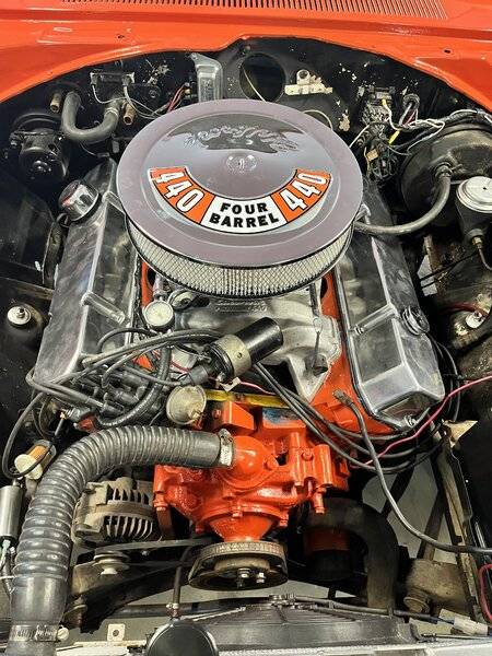 I bought a new 1969 SuperBee with the 335 h.p. orange motor and AVS carb. My car had the RamAir hood, so did not have the small round air cleaner with a pie pan. At the same time, an acquaintance had a new 1969 Coronet 500. It had the turquoise 330 h.p. engine with a Holley. At the time, I felt like I got cheated, because all the hot rod magazines made out that a Holley was the ultimate carb. I remember that my Super Bee sounded a lot more " rumpety " than the other guy's 500, so definitely a different cam. A while ago, I discovered a 1969 Coronet 500 convertible in a local junkyard up here. It had the remains of an orange 383 in it with a stick shift bellhousing ( the 4-speed was missing ). I harvested the the HP exhaust manifolds off it for my project. I have learned to never say " Never " with Mopars. Although printed literature says the orange 335/383 was a special motor available only in SB and RR, there must have been a way to order it in other B-bodies as well. Does anyone know of Belvederes or Satellites with factory installed orange 383 with AVS?