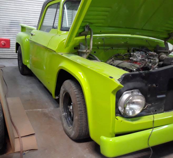 Thanks, you have some awesome trucks there as well. The 52 was a fluke for me to be honest. I was watching American Restoration and the owner Rick has a 40 something Ford PU hotrod that I am sure someone built for him. I thought, "damn I need a Mopar shop truck" so off to craigslist I went and found the 52 which was completely torn apart but the original flat 6 and trans were still in the frame and could be started and moved. Anyway, I got it for basically nothing (traded something I had zero money in) and drug it home. Took me 3 weeks to have it running and driving but then discovered that 45 mph was top speed so that wouldn't do. A guy I know found a 56 Desoto that a guy wanted $500 for w/o a title. The guy I knew wanted the trim to sell and I wanted the engine. Anyway, after a fair amount of work I got the 330 rebuilt an running, then got a 88 Dak off CL and chopped the front end off and grafted it on to the 52. I had to set the firewall back about 12", make engine mounts etc. I put a 8 3/4 out of a Challenger (all chrome...), used the old leaf springs out of the Cuda and painted it with some left over black lacquer. I eventually put a fitech EFI system on it because I don't drive it much and the brand new Holley crapped the bed after the first winter of sitting.