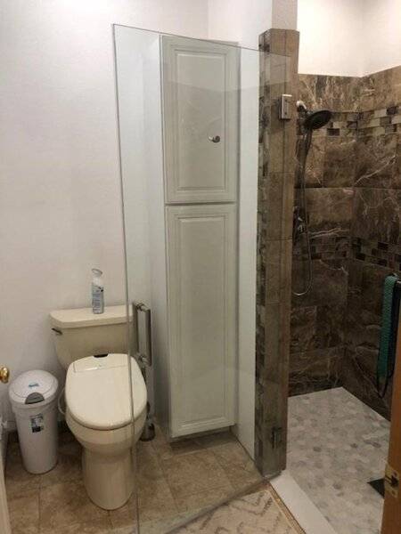 Here's what started the whole remodeling gig. My wife's surgery in January left her partially disabled so I designed and built her a handicapped shower. Everyone that sees it really likes it. I'm 72 and have been working 7 days a week without a break. Last night I was under the house until 12:30 A.M. finishing the gas line to her new 36" commercial gas cooktop. I gutted the kitchen near the end of August and it's been a long time without being able to cook. Today, 12/21/2020, she was finally able to use the cooktop.