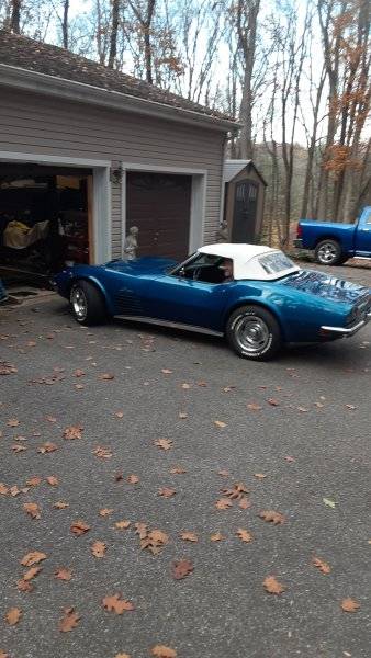 Still has chrome bumpers on both ends so it's OK to me...My friend and I went to New Jersey Wednesday and picked up this 70 Corvette roadster 454 390 hp 4 speed car. I bought the 72 Corvette 454 that he currently has. We were riding around in a Corvette convertible with the top down on November 6th!
