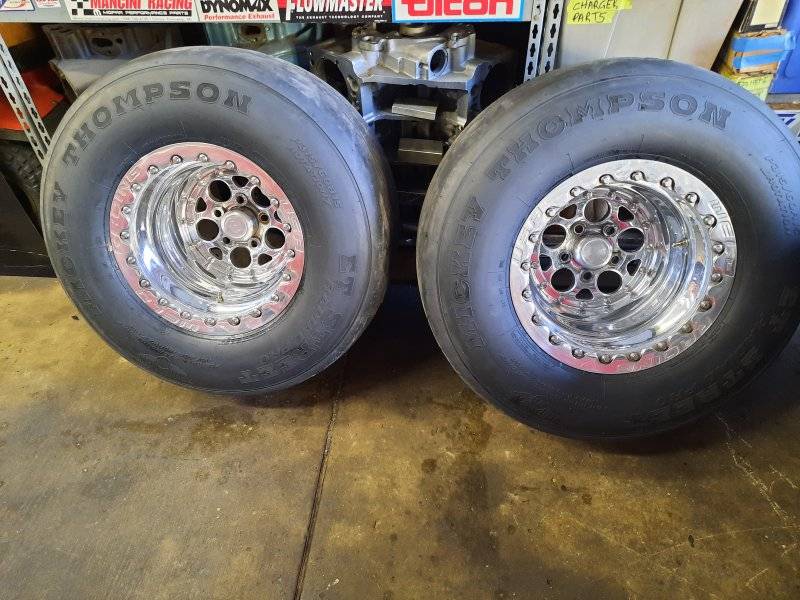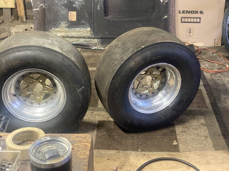 My centers were gold to start. Probably why I was able to get such a good deal on them because they looked hideous. I stripped them then polished the centers and added s.s. 12 point ARP bolts.I picked up a pair of 15x10 Weld Alumastars with 11.5 wide slicks.