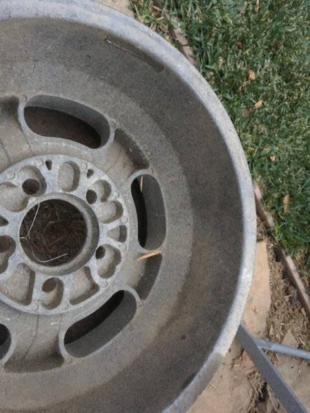 I just got some used aluminum slots for my 73 d100 and had new cooper cobras installed on them. I drove the truck to the tire shop to have the tires installed and after they were balanced, the square, stick-on wheel weights hit the brake caliper. There is about 1/8" clearance between the caliper clips and the inner part of the wheel.