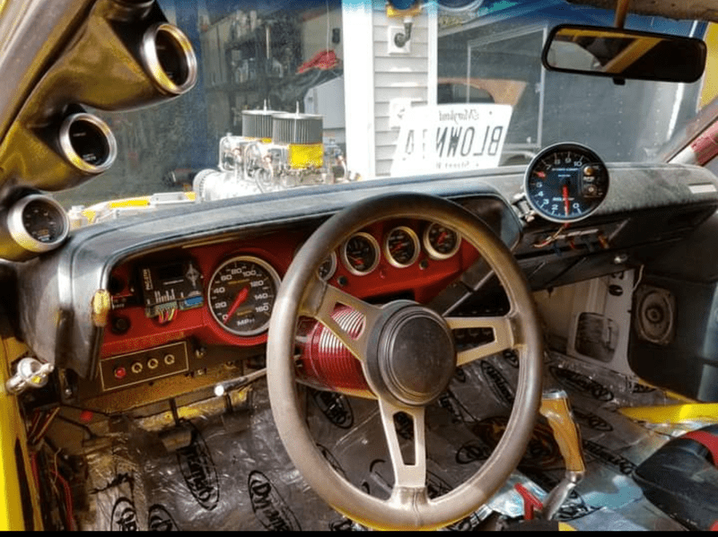 It has a blueprinted 440 with ported heads, an electric water pump, Milodon oiling, big mechanical cam, Hooker super comp headers, a BDS 8-71 blower with 2 650 double pumpers, and a MSD ignition.