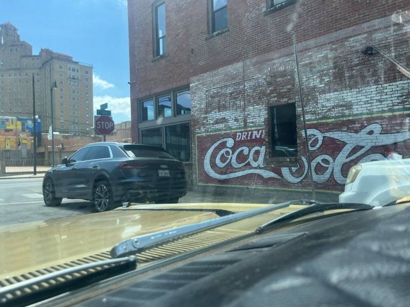 I go to an art show in Belleville Illinois. The buildings and the streets look like that. They block off the streets for blocks and the town center. I park in the back by a place that looks like where your car is parked. It's a Mexican joint that serves the best margaritas, by the pitcher. I've learned never drink a pitcher before you walk a few miles. Felt like 20 miles!! Pay attention now, I'm giving life lessons for free here!! LOL.I made enough of a contribution to hey-o, time for a little fun. We have great down town with some great little shops, one of them is a new butcher shop so I thought I’d stop by. This car is fantastic, and really a testament to a properly built hot rod. Cruise down the highway? Sure. Idle around town like a Honda civic but waaay cooler? Why not. Drop a gear and do awesome burnouts? Well even though it tootles around town like a Honda civic it is a muscle car after all