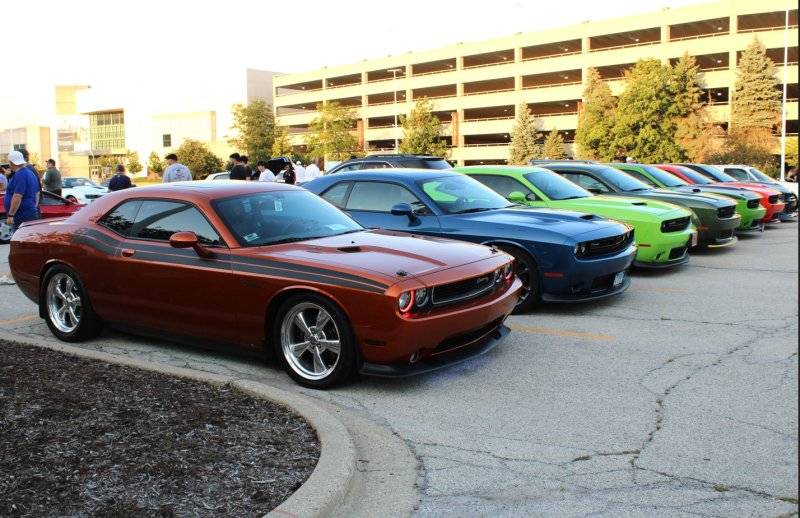 I remember the first time the new Challenger showed up at the plant for new corporate product show and tell. There was no doubt it was a winner. The charger was another story though, it got the name, but was built to be the new Intrepid, 4 doors and back seat friendly. As far as old school Challengers, @VANDAN has a really nice one, the picture he posted is proof positive. It's bitchin to line up in numbers like that and be part of a huge car movement which challengers have become. I go anywhere and few know or care for a 65 Coronet. People have asked me several times why a 65 Coronet. I guess I'm just odd that way, well, that's not the only way I'm odd, but you get it!! LOL .............. To be honest, any Mopar with a 5.7 works for me!! I turn down an opportunity to buy a 2009 Black Charger R/T, automatic, with 88,000 miles for 800 bucks not two weeks ago. It ran perfect, but had MAJOR electrical issues. Had I lived in one of my bigger houses, I would have bought it, fogged the engine and kept the drivetrain, front to back and associated wiring and gave the rest away. I have friends that would love the interior for Restomod builds. I get why people love to keep all that stuff, I did when I was much younger and still ended up giving it away.This time of the year around here is depressing in a way, as a number of our local cruise nights are ending. Monday was 2024's last of a popular Monday night cruise at large shopping center that I attend regularly. Weather here is miserable due to excessive heat warnings, > 100° heat indexes. I really hoped they'd cancel it and do a make-up for the last night of the season next week instead, but they decided to do it anyway. I had planned to take my Challenger convertible but had no motivation to dig it out of the garage and wrestle with putting the boot on etc and drive there in the heat top down. I didn't want to miss the last night though, so took the lazy route and just drove the new Scat Pack with the AC and ventilated seats both on high.
