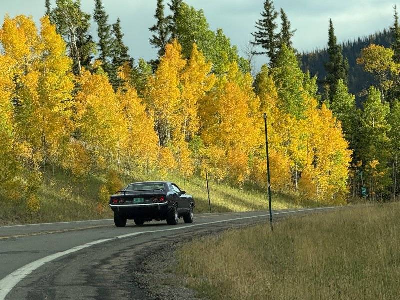 Absolutely beautiful!!! Thanks for sharing!!Took a 10 hr round trip to Creede in SW Colorado for their annual show and see the brilliant colors of the Aspen. We only had a few issues. The alternator quit on my friends ‘72 Cuda 440, so we did a quick swap in the parking lot of Napa. My oil pressure was reading low so installed a new sending unit but it didn’t help. Luckily a friend in Alamosa was able to hook up a mechanical gauge and it was reading just fine. While at the show, another friend with a El Camino was having fuel issues with his Sniper, so we swapped fuel pumps but it didn’t help. He had to be towed home and it ended up being the regulator in the Sniper itself, which apparently is discontinued so he has to buy a new Sniper 2, or just go back to a carb.