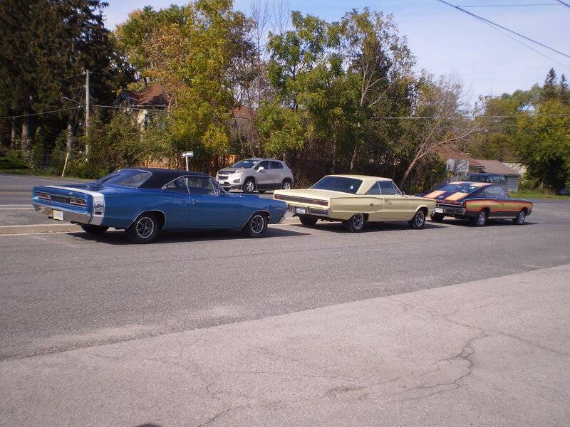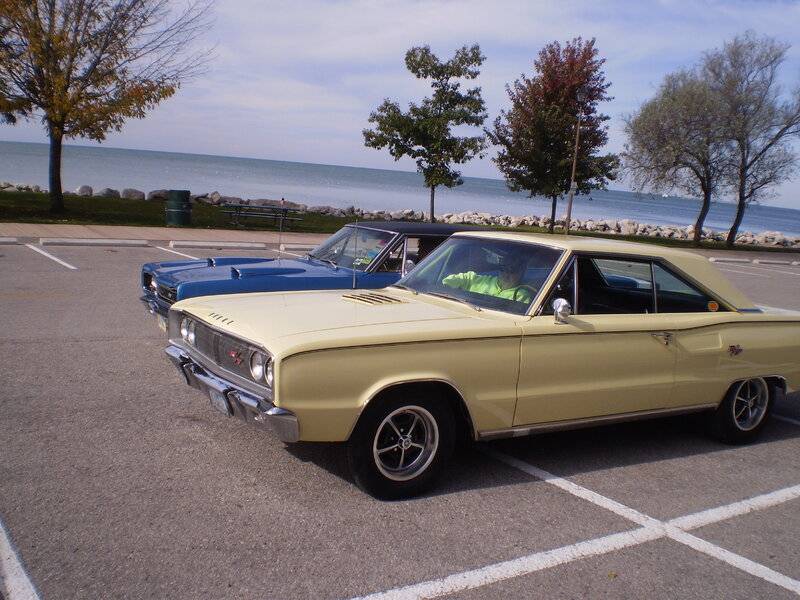 It was a nice day on Thursday, so my friends, Richard and Dave and I went on a road trip. We all live near the north shore of Lake Erie, and Tourism Ontario calls this area Ontario's South Shore. We decided to tour Ontario's West Shore, which is actually the east shore of Lake Huron. We travelled through Parkhill, Ontario to Grand Bend, a small town known for its excellent beaches and equally excellent drag strip. From there, we traveled north on Hwy 21 to Bayfield, a quaint tourist town of small inns, restaurants, and gift shops. We continued north to Goderich, which is known as Ontario's prettiest city. The streets are laid out in a wagon wheel pattern. The area court house occupies the city's central hub. Sifto Salt has a huge operation here, mining salt from under Lake Huron. Goderich has another beautiful beach and maintains a wonderful boardwalk along it. This area was hit by a devastating tornado that rolled in off the lake about ten years ago and damaged or destroyed many homes and businesses. Little evidence of this catastrophy is seen today, with everything rebuilt. Before leaving Goderich, I was able to pump $100.00 of Shell's finest in my 1967 R/T. At 12 1/2 gallons, it puts the price of 91 octane at $8.00 per gallon. Heading east from Goderich, we left the West Coast and drove to Blyth, where we enjoyed lunch at the Cowbell Brewery and Restaurant. This was formerly a huge barn and was converted to its present use. From there, we returned home, passing south through Seaforth and London. All in all, about 275 miles. I left home at 9 am, returning at 6 pm.