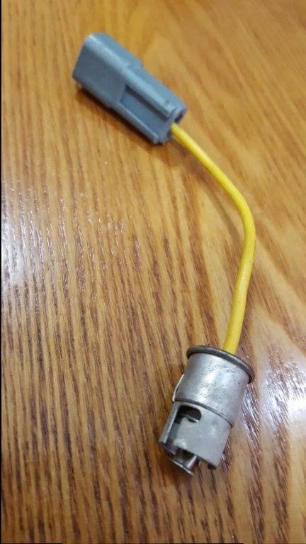 It's about 4" long, yellow, and labelled as 22A and 46399. Single-terminal female connector, and I think a 1445 lamp, although not 100% sure it was the correct one.