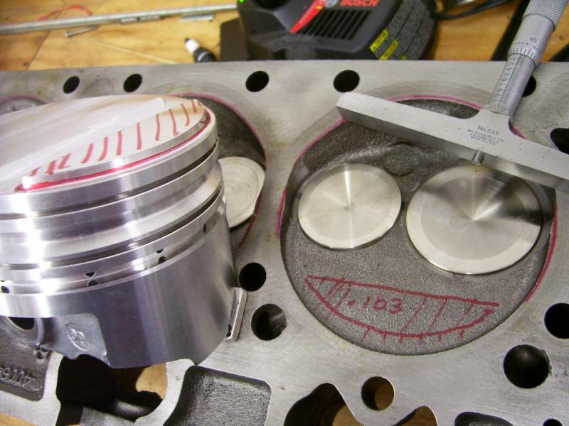 i've been getting some kb184 questions so i decided to post a pic of what i do. i've tried to highlight where the quench dome fits in the open chamber recess. i also show a depth mic i use to measure the recess in the head and to measure deck height when the piston is in the block at TDC. hopefully the pic is helpful.