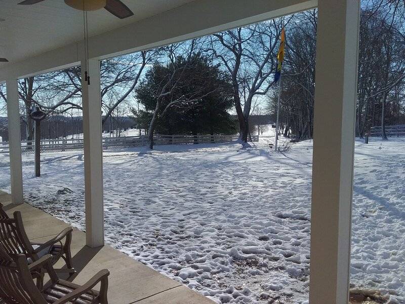 mama and her fawn looking for cover. Ran down my fence line to the road and hemmed and hawed around and changed their minds and ran back up the field to the big woods. Nice looking deer. About 150 feet away. They listened to me talking on the back porch and didn't spook.