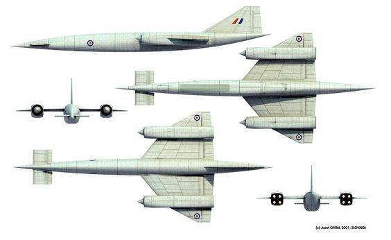 In the early 1950's, the British RAF was filled with new jet fighters and bombers, but they were all subsonic. Looking for a high speed (mach 2.5) interceptor/bomber, AVRO was awarded the contract to build their proposal Avro 730. Unfortunately, after a few years of work their efforts were cancelled in 1957. Much testing with engineering scale models, wind tunnels and heat ovens had already been accomplished, but not yet a flying prototype of what was now designed for mach 3. A lot was learned with this eight-engined aircraft, and after cancellation some of the design information was transferred to the Concorde project.