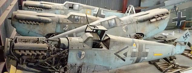 Those don't look like Messerschmidts, they look like Buchons. They were built in Spain under license but used Merlin engines instead. Buchons were used in the movie 'The Battle Of Britain' to simulate BF-109Es, these could be the same ones. The Daimler-Benz engines in real Messerschmidts were inverted.
