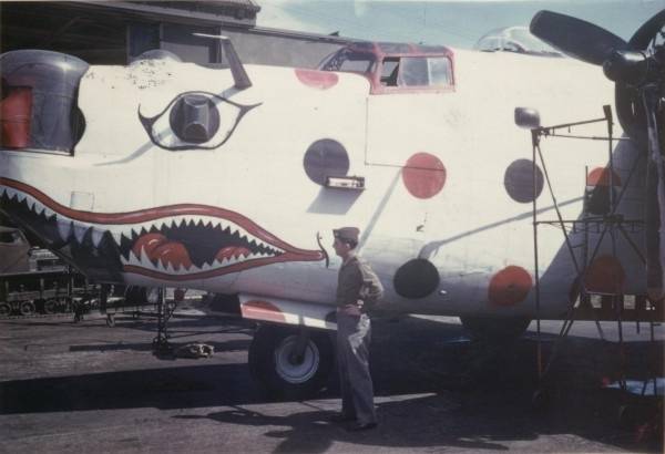 The Little Gramper, a B-24D, was the first Lead Assembly Ship of 491st Bombardment Group. She wore one of the brightest and most visible schemes of all the assembly ships