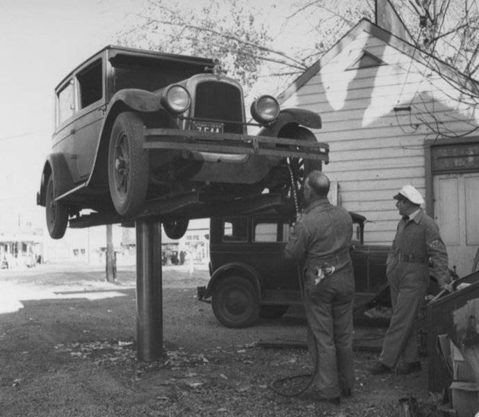 A buddy of mine has one of these open air hoists behind his shop, and uses it each fall to oil (rust protect) customer's cars before winter. We live in the southern Ontario rust belt where municipalities use salt to melt road ice. This annual rust protection helps preserve our cars from the tin worm. His hoist is neat, in that he can drive the customer's car on the hoist, do the spray job, turn the hoist 180 degrees, and drive it back off again.
