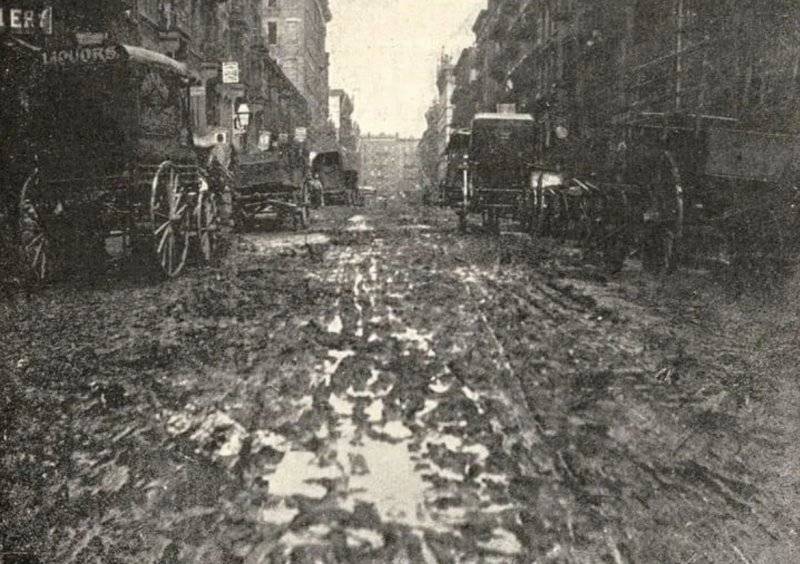 this was taken in the 1890s, the horses that were used to carry the people were estimated to drop 15-30lbs of poo a day, with an estimated 150k horses in the city, that’s a lot of crap!
