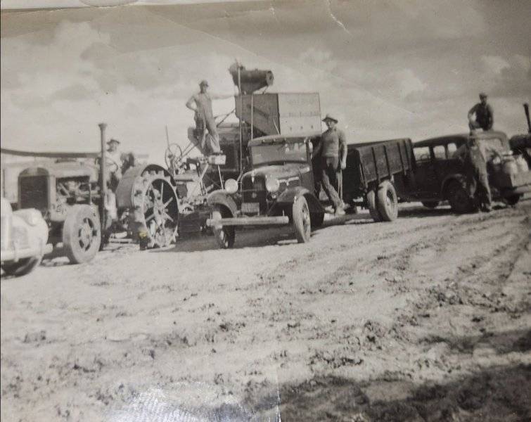 What is he harvesting...gravel?My great great grandfather harvesting his fields in dodge city 1941View attachment 1702313