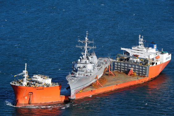 I believe that's the USS Cole (being carried).Whole damn ocean but they both had to be in the same place at the same time....